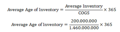 Average Inventory = (180.000.000 + 220.000.000) ÷ 2 = 200.000.000