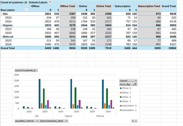 Berdasarkan data grafik, terlihat indikasi kuat bahwa variabel insentif (diskon) dan kanal akuisisi saat ini tidak memiliki korelasi positif yang signifikan terhadap retensi pelanggan. Hal ini didasarkan pada dua temuan utama: